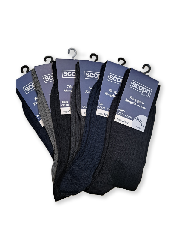 Calza corta uomo in cotone filo di scozia rimagliata a mano.