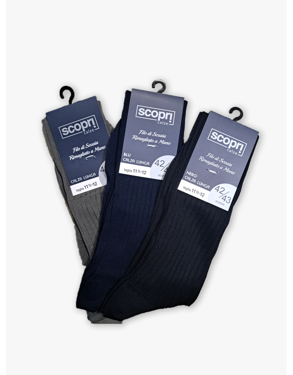 Calza lunga uomo in cotone filo di scozia rimagliata a mano.